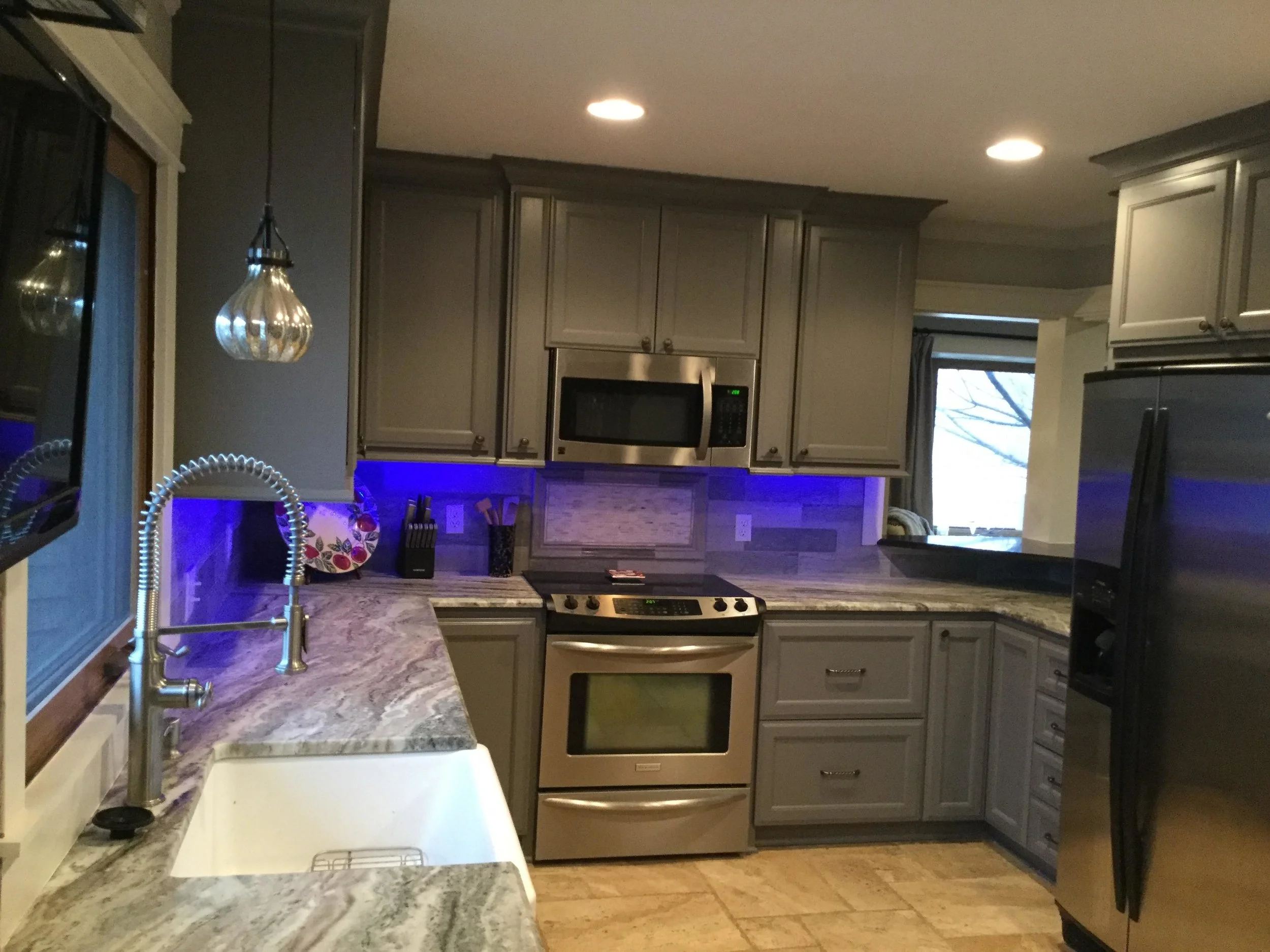 We love the transformation of this fully remodeled kitchen. With custom cabinets and backlighting, the space looks brand new.